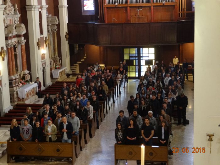 Svetu misu za studente slavio je don Damir Stojić, kapelan studenata. U koncelebraciji je bio fra Petar Klapež, gvardijan i upravitelj Svetišta. Fra Petar je na početku pozdravio sve prisutne. U kratkim crtama je opisao povijest Gospine slike, crkve, Svetišta i samostana kroz proteklih tristo godina. Don Damir se u propovijedi osvrnuo na slavnu pobjedu pod Sinjem 1715. godine. Misna čitanja povezao je s braniteljima koji su bili u tvrđavi. Čitali su se završni odlomci iz Djela apostolskih i Ivanova evanđelja.