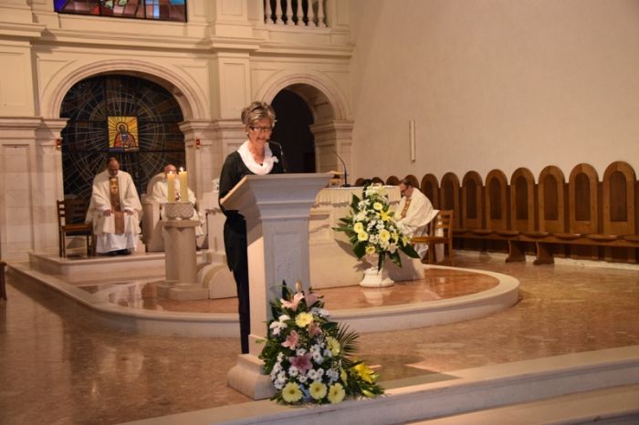 U sjeni joj rastu djeca i zaručnici. Zrije mladost ukrijepljena idealima. Kao žarke svijeće trepere majčinstva i stoje očinstva kao stupovi. Redovnice joj polažu ljiljane u krilo. Mladići, misleći na žetvu i vinograde, postaju svećenici. Sanjajući svetiji svijet... Kao nekad tako i danas Ona pomaže svakome – da odjene haljinu svoje službe. Molimo je da ustrajemo.