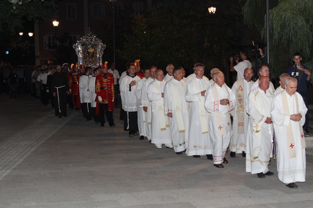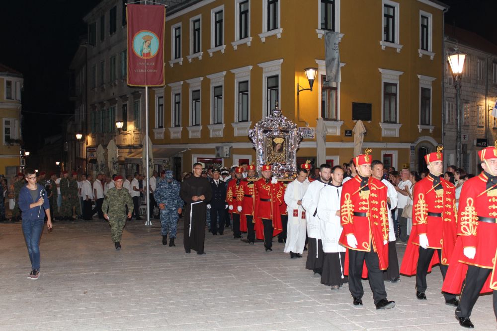 Na završetku euharistijskog slavlja gvardijan fra Petar Klapež zahvalio je mons. Jurju Jezerincu, glavnom tajniku MORH-a, admiralu Stipanoviću i svim časnicima i dužnosnicima kao i vojnicima, policajcima i braniteljima. Istakao je kako sada slijedi procesija sa slikom Gospe Sinjske na Grad, a ta je procesija posebnost jer se događa drugi put, tj. prvi puta je bila prije sto godina.