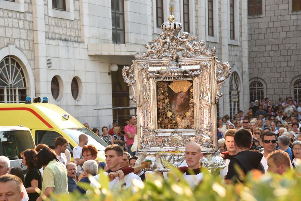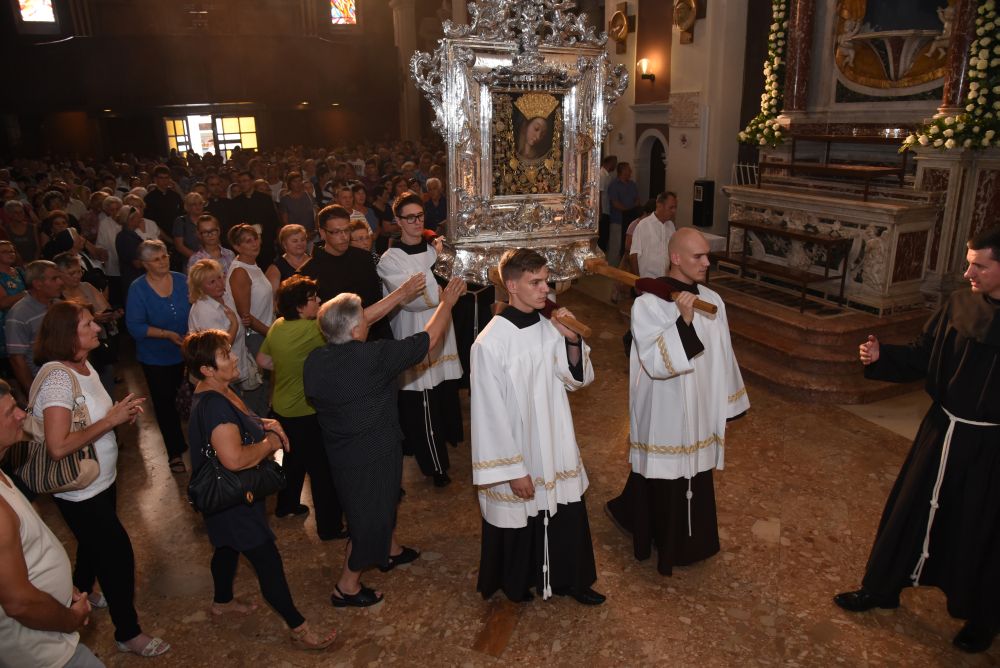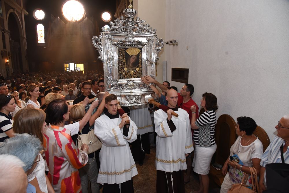 U predvečerje svetkovine Velike Gospe, 14. kolovoza 2015, slavlje Uznesenja Blažene Djevice Marije na nebo započelo je u 18.00 sati skidanjem Gospine slike i procesijom preko samostanskog dvorišta do Trga dr. Franje Tuđmana.