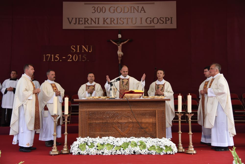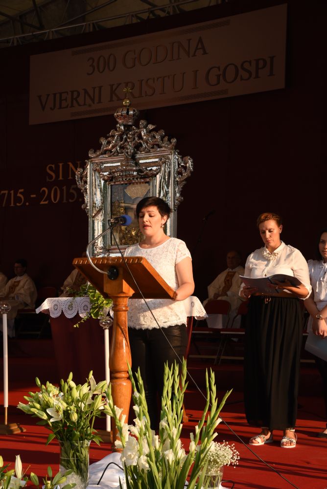 Dojmljive su bile Kardinalove riječi: „Želim se danas kao hodočasnik, braćo i sestre, pridružiti vama hodočasnicima koji ste danas došli našoj zajedničkoj Majci, Gospi Sinjskoj. Želim zajedno s vama i za vas moliti. Nosim vam zajedništvo i blizinu Crkve Zagrebačke. Nosim vam blagoslov iz Stepinčeve katedrale. On, Marijin hodočasnik, hodočastio je i u ovom svetište. On je s nama duhovno prisutan, on nas zagovara u svim našim potrebama, te nas ljubi nebeskom ljubavlju. Danas kada sam stigao osjetio sam da je ovdje crkva koja se moli, crkva koja se okuplja, od djece i mladih, od obitelji, roditelja, očeva i majki baka i djedova koji su došli s posebnim osjećajem i s jednom duhovnom obvezom da ispune zavjet pred Marijom. To je nešto što je dio nas. Bez hodočašća, bez slavlja, bez zajedništva se Marijom, Gospom Sinjskom mi ne bismo bili ono što jesmo. Ona je dio našeg identiteta. Mi smo njezini, ona je naša. To vjerujem da svake godine iznova osjećate, a osobito ove godine kada slavimo ovaj visoki jubilej zato neka dobri Bog blagoslovi vas i sve vaše, vas draga braćo i sestre, vas dragi Sinjani, vas vjernici ove dične biskupije splitsko- makarske, vas dragi hodočasnici, osobito vas iz Livna, Duvna i Rame“.