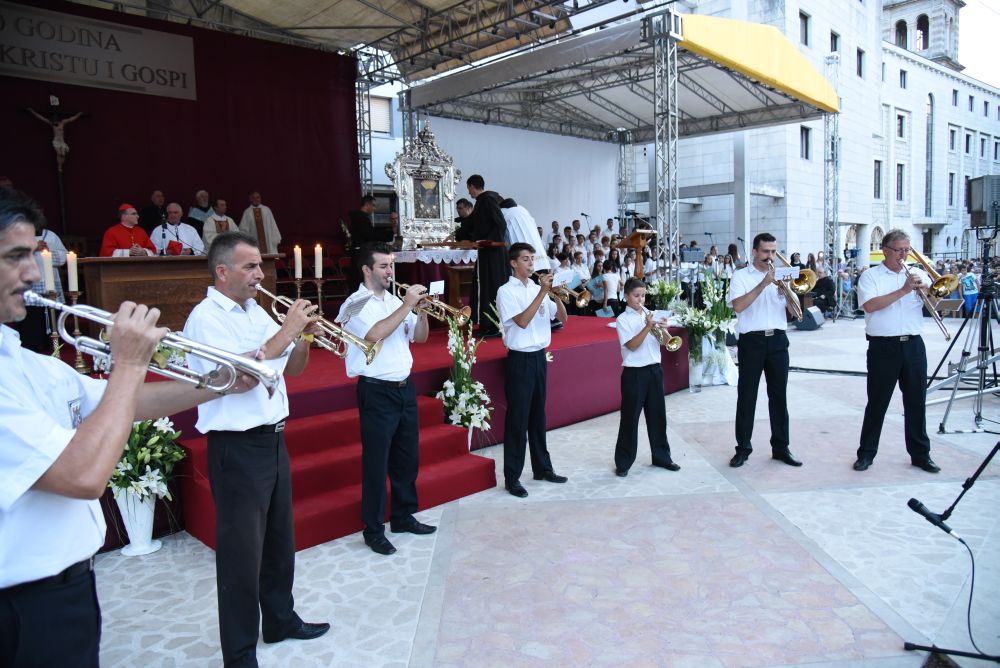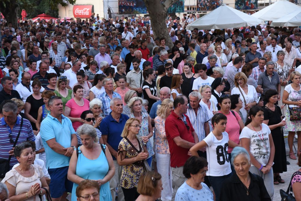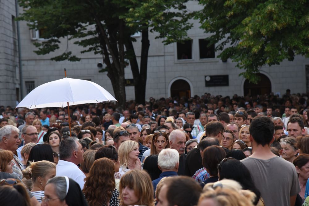 Nakon sv. Mise u pratnji našeg nadbiskupa mons. Marina Barišića, kotorskog biskupa Ilije Janjića, križevačkog vladike mons. Nikole Kekića, te službenih pratitelja, gvardijana fra Petra Klapeža i cetinskog dekana don Stipe Ljubasa, na trg dr. Frane Tuđmana gdje je održano večerašnjo slavlje došao je uzoriti kardinal Josip Bozanić.