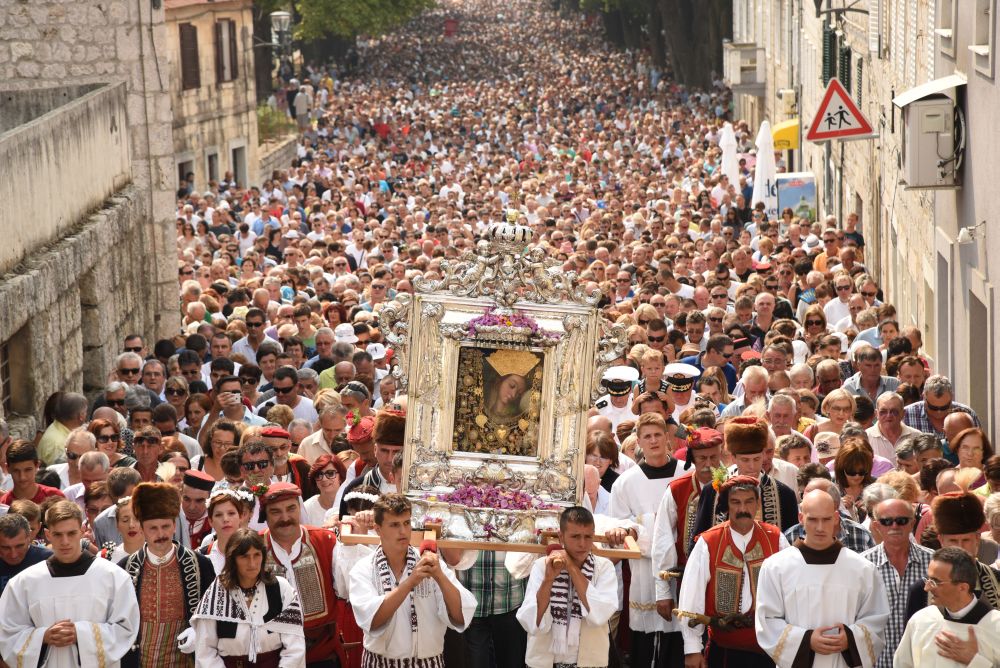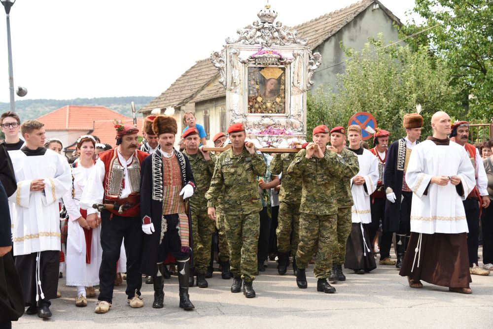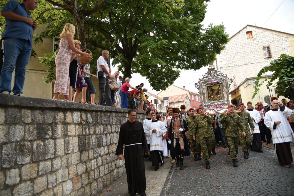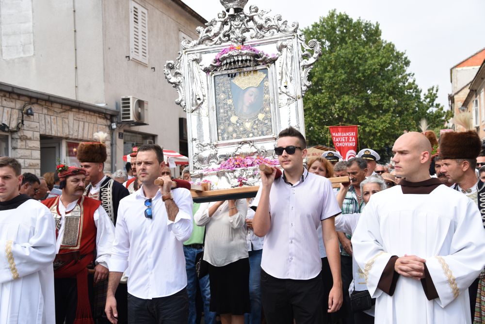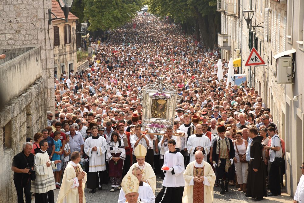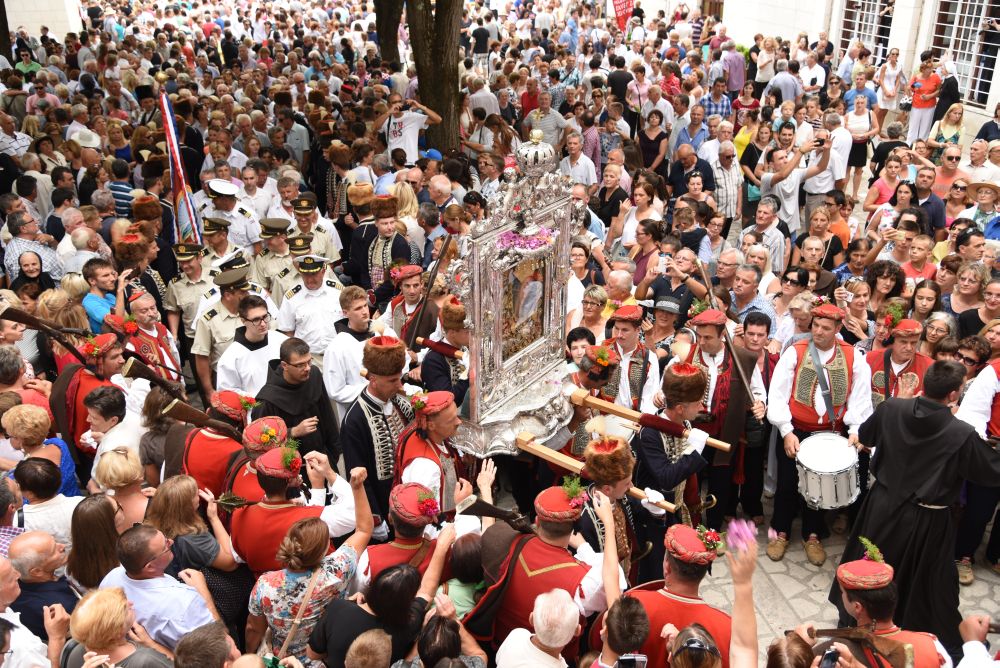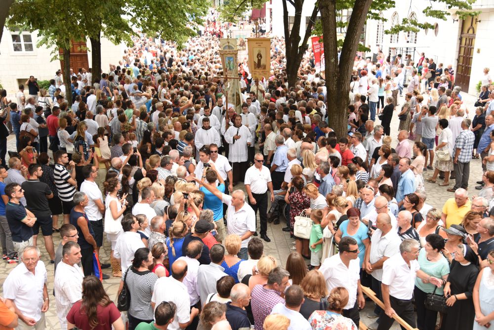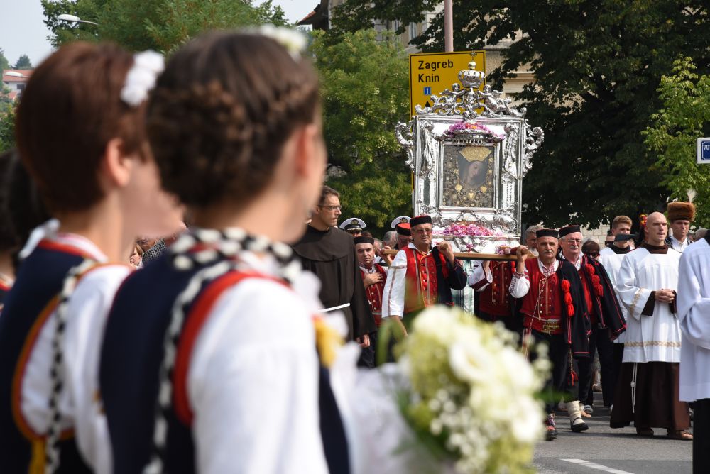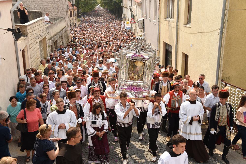 Središnje Slavlje svetkovine Uznesenja Blažene Djevice Marije ili Velike Gospe, te proslave 300. godišnjice čudesne obrane Sinja pred najezdom Turaka, započelo je procesijom iz crkve Gospe Sinjske ulicama grada Sinja. Procesija se počela formirati na Trgu kralja Tomislava u 9:00 sati. U 9:30 slavljenjem crkvenih zvona i sviranjem fanfara označeno je skidanje Gospine slike s oltara i početak procesije.
