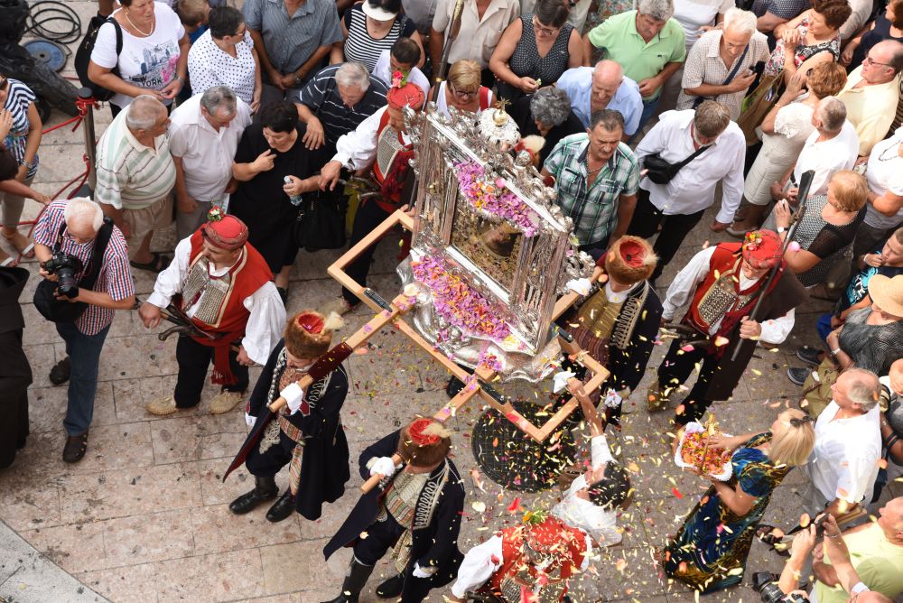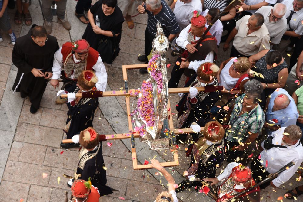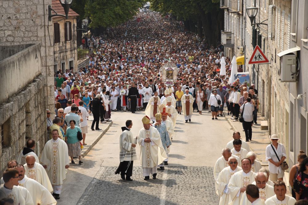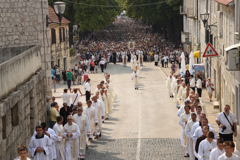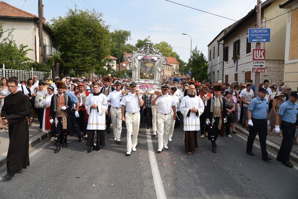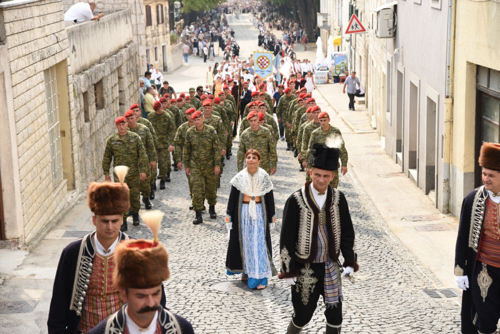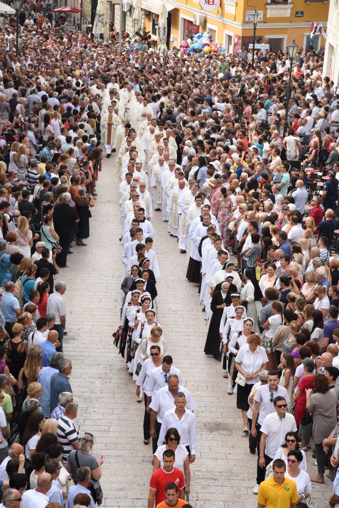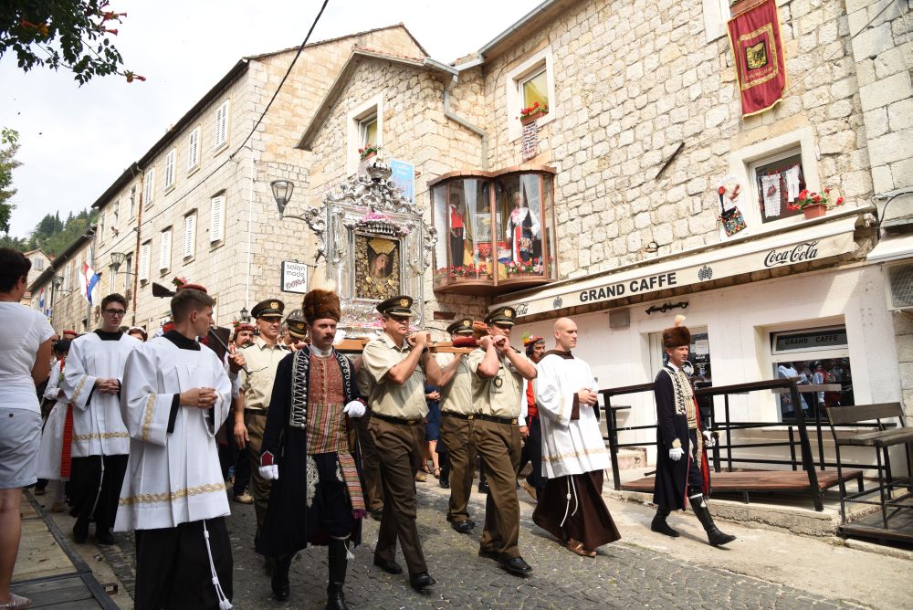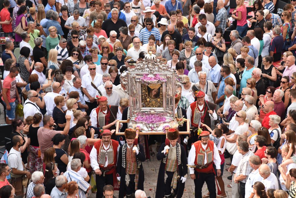Središnje Slavlje svetkovine Uznesenja Blažene Djevice Marije ili Velike Gospe, te proslave 300. godišnjice čudesne obrane Sinja pred najezdom Turaka, započelo je procesijom iz crkve Gospe Sinjske ulicama grada Sinja. Procesija se počela formirati na Trgu kralja Tomislava u 9:00 sati. U 9:30 slavljenjem crkvenih zvona i sviranjem fanfara označeno je skidanje Gospine slike s oltara i početak procesije.