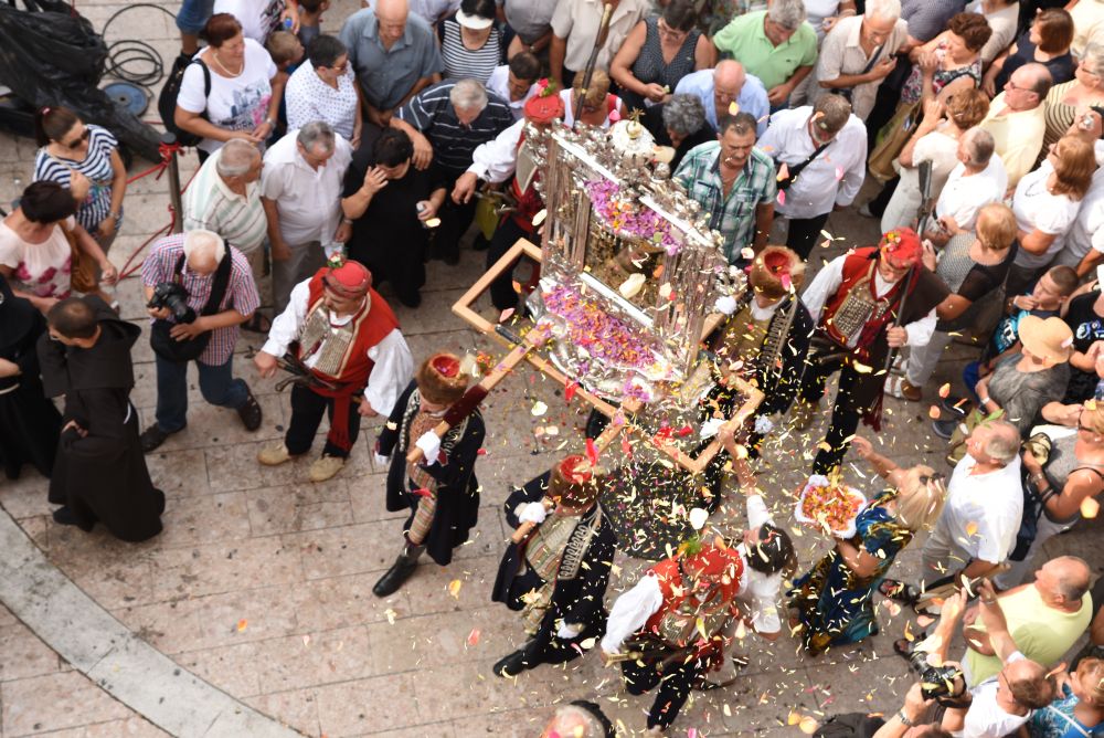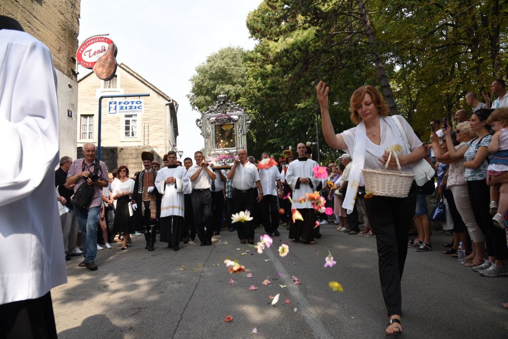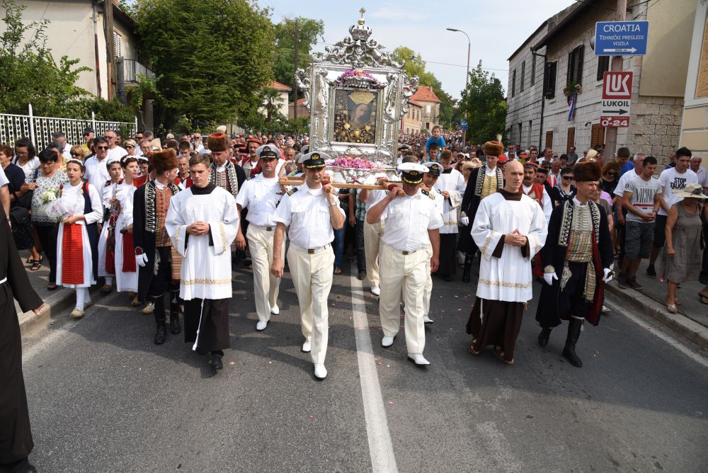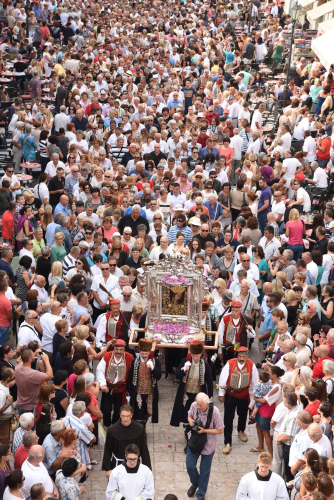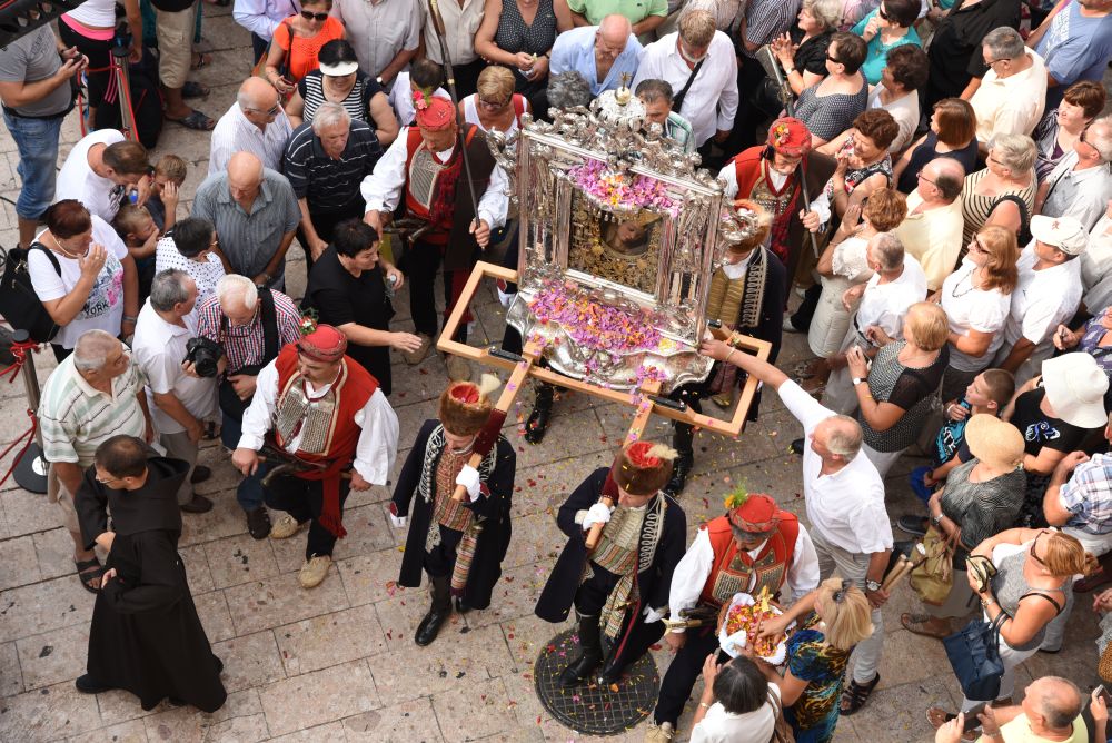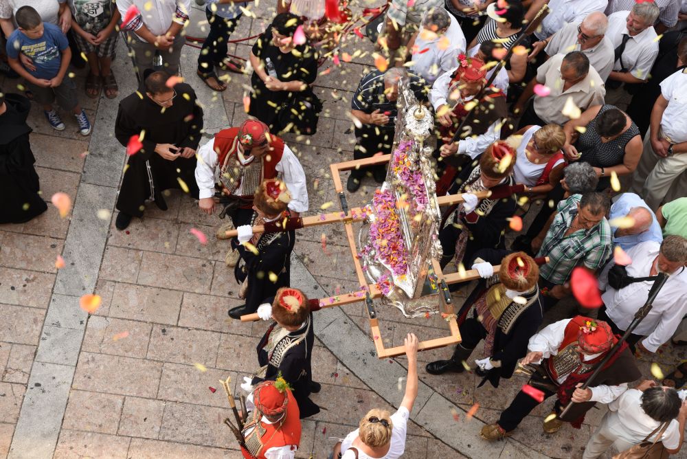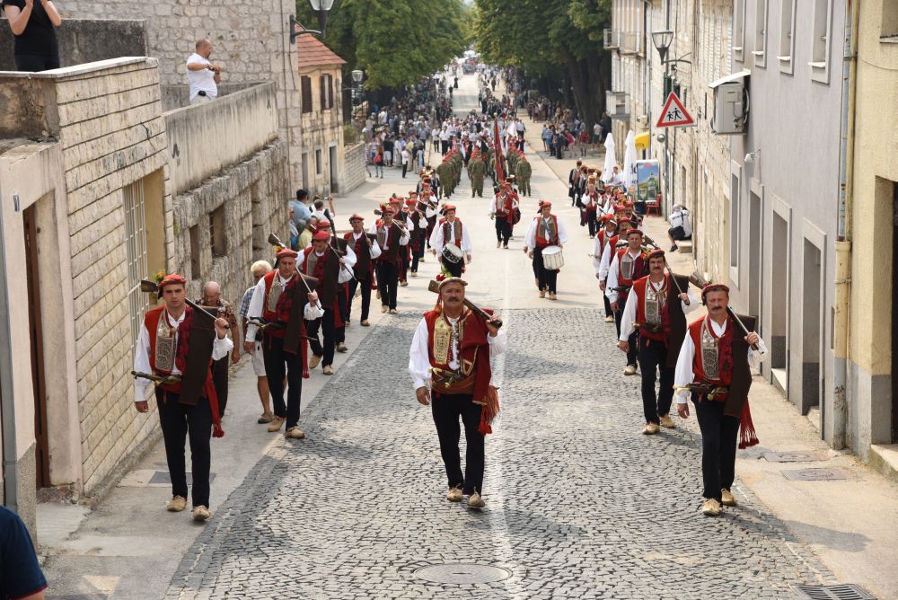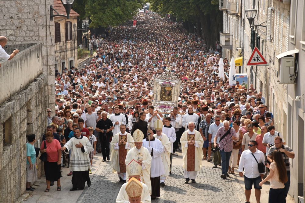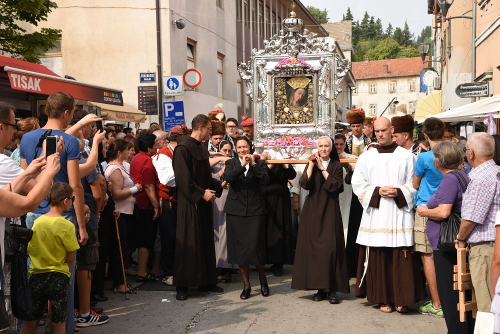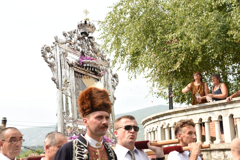 Središnje Slavlje svetkovine Uznesenja Blažene Djevice Marije ili Velike Gospe, te proslave 300. godišnjice čudesne obrane Sinja pred najezdom Turaka, započelo je procesijom iz crkve Gospe Sinjske ulicama grada Sinja. Procesija se počela formirati na Trgu kralja Tomislava u 9:00 sati. U 9:30 slavljenjem crkvenih zvona i sviranjem fanfara označeno je skidanje Gospine slike s oltara i početak procesije.