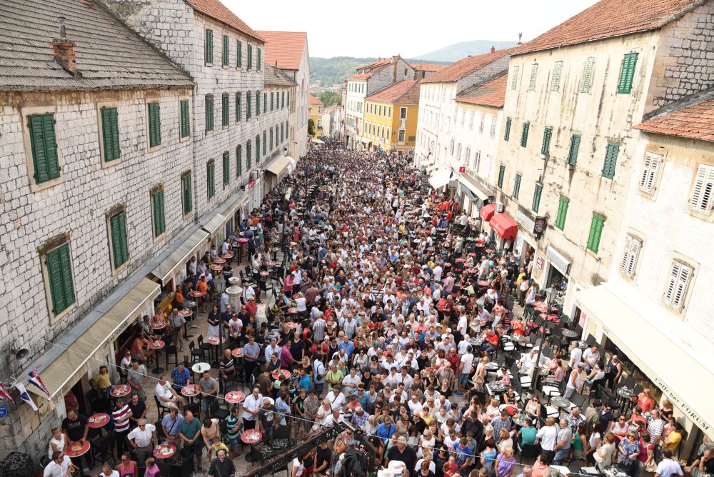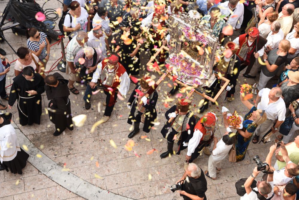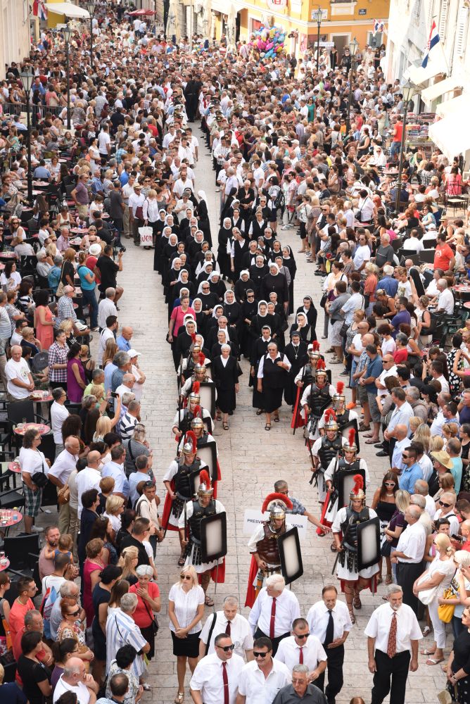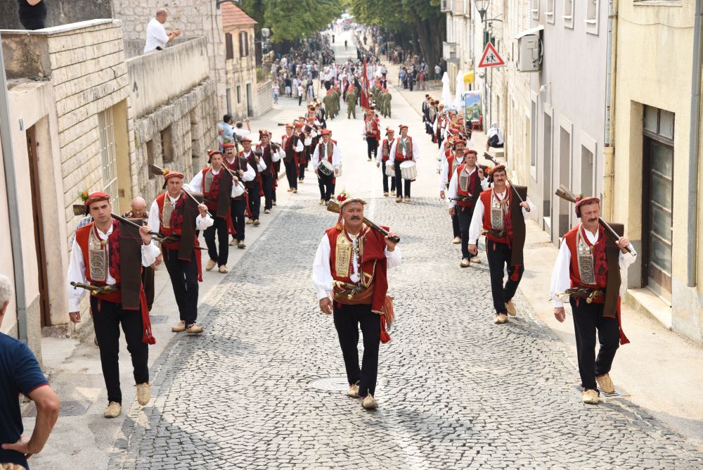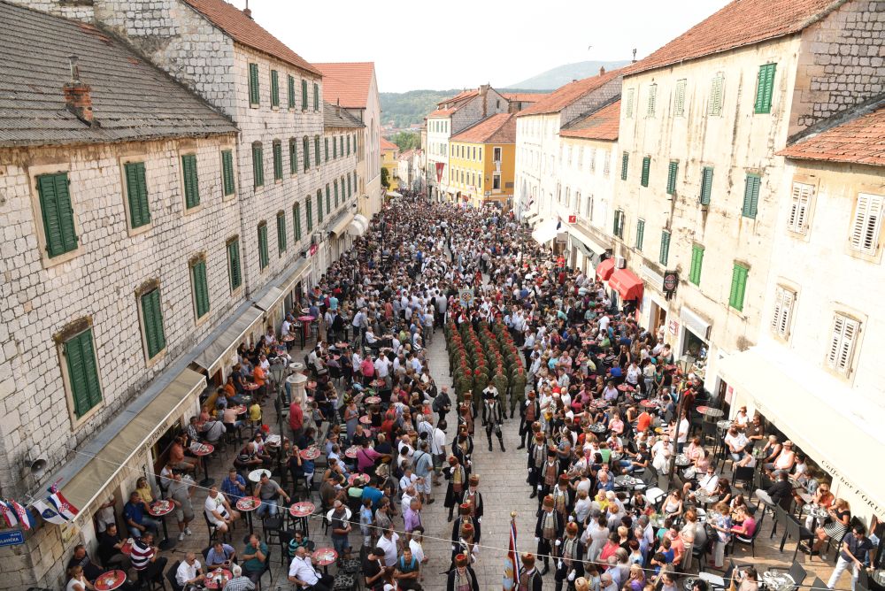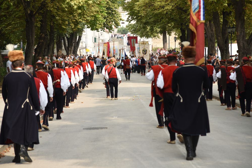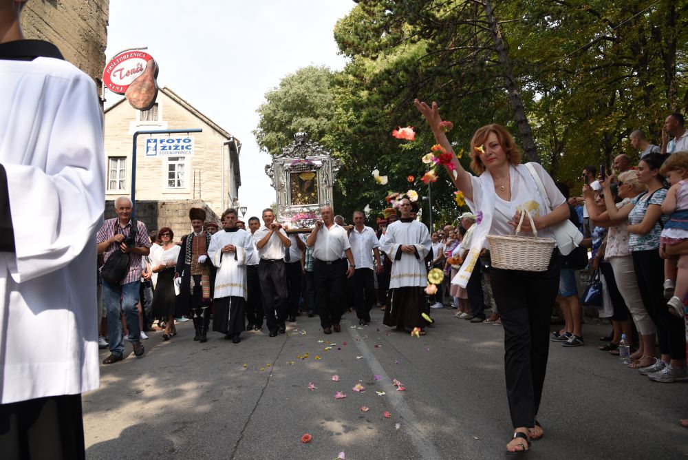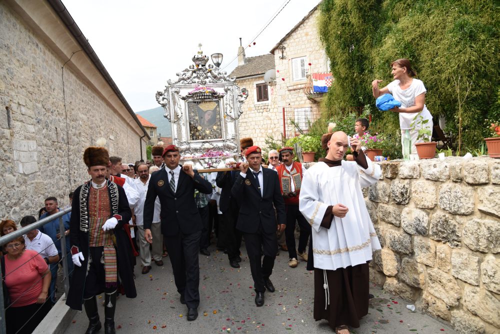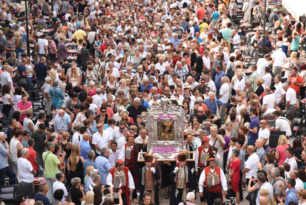 Središnje Slavlje svetkovine Uznesenja Blažene Djevice Marije ili Velike Gospe, te proslave 300. godišnjice čudesne obrane Sinja pred najezdom Turaka, započelo je procesijom iz crkve Gospe Sinjske ulicama grada Sinja. Procesija se počela formirati na Trgu kralja Tomislava u 9:00 sati. U 9:30 slavljenjem crkvenih zvona i sviranjem fanfara označeno je skidanje Gospine slike s oltara i početak procesije.