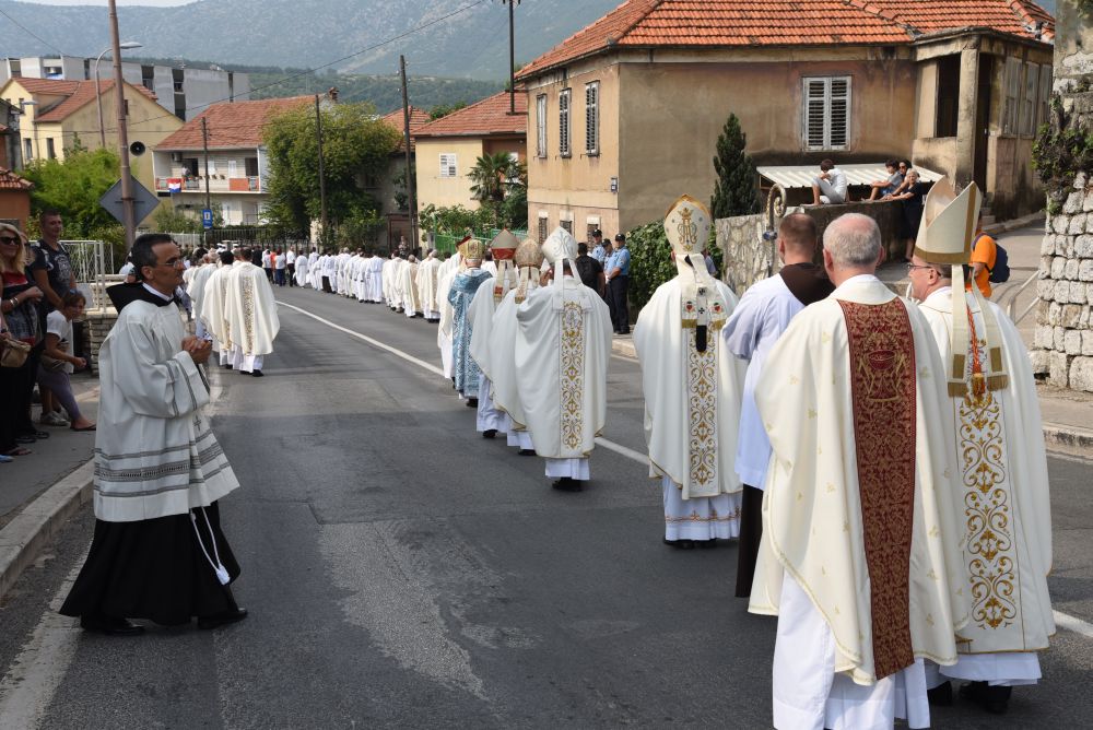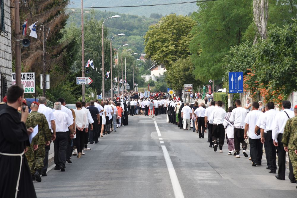 U prvom dijelu procesije koja se formirala iza križa bili su nositelji zastave Gospe Sinjske i hrvatske zastave, nositelji župskih barjaka, alkari i alkarski momci, hrvatski vojnici, predstavnici policije i vatrogasci, predstavnici kulturnih društava i udruga, predstavnici državnih, županijskih, gradskih i općinskih vlasti, hrvatske vojske i Ministarstva unutarnjih poslova, časne sestre, nositelji Gospine slike, ministranti. Neposredno ispred Gospine slike bili svećenici i biskupi predvođeni posebnim Papinim izaslanikom kardinalom Josipom Bozanićem, a iza slike nepregledno mnoštvo od nekoliko desetaka tisuća vjernika.