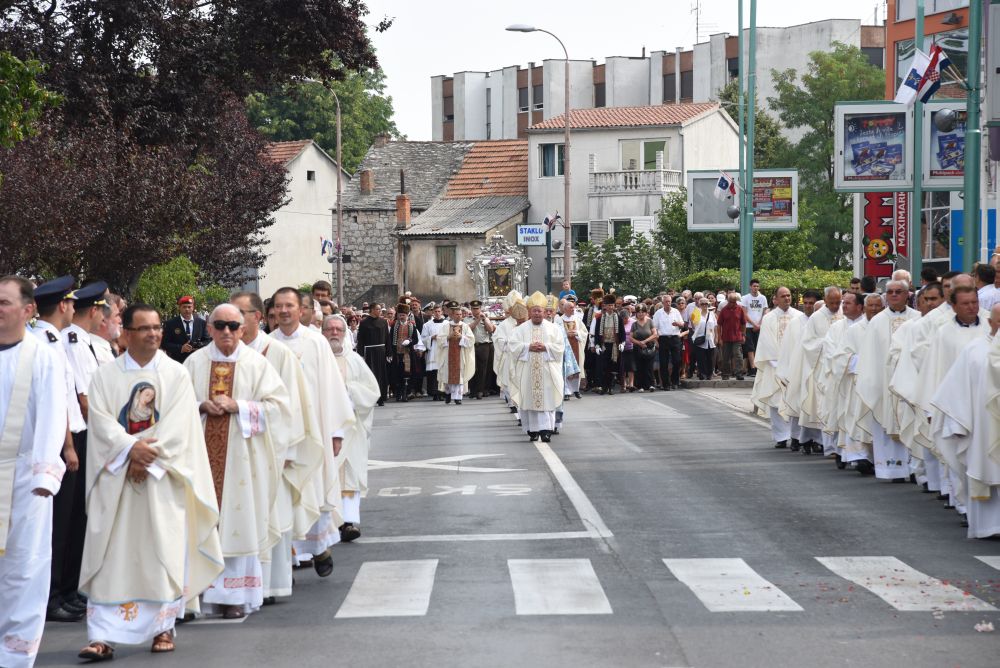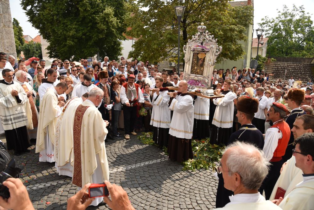Nakon procesije, koja je trajala sat i trideset minuta uslijedilo je euharistijsko slavlje. Euharistijsko slavlje, kao posebni Papin izaslanik predvodio je zagrebački nadbiskup kardinal Josip Bozanić, u zajedništvu s mons. Marinom Barišićem, nadbiskupom metropolitom splitsko-makarskim, mons. Želimirom Puljićem, nadbiskupom zadarskim i predsjednikom Hrvatske biskupske konferencije, mons. Franjom Komaricom, biskupom banjalučkim, mons. Ilijom Janjićem, biskupom kotorskim, vladikom Nikolom Kekićem, biskupom Križevačke eparhije, mons. Markom Semrenom, pomoćnim biskupom banjalučkim, provincijalom Provincije Presvetoga Otkupitelja, fra Joškom Kodžomanom, čuvarom Sinjskog svetišta, fra Petrom Klapežom, cetinskim dekanom don Stipom Ljubasom, sinjskim župnikom fra Antom Bilokapićem te s ostalim provincijalima, svećenicima i redovnicima.