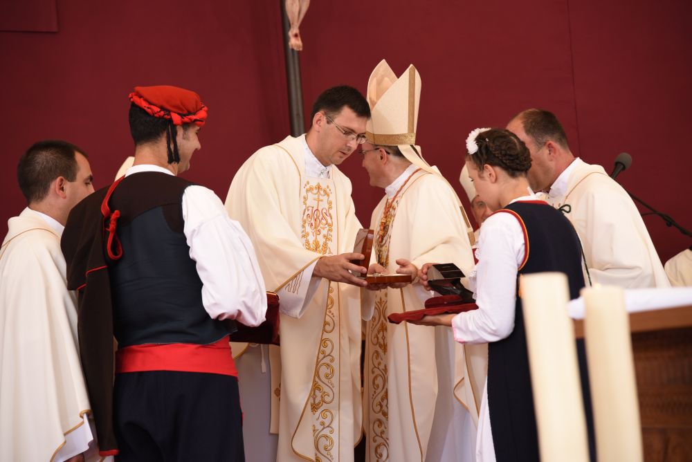 Na kraju misnog slavlja riječ zahvale je uputio provincijal Franjevačke Provincije Presvetog Otkupitelja fra Joško Kodžoman, koju možete pročitati OVDJE. Na kraju zahvalnih riječi uručio je poklon Kardinalu, Mitru i zlatnik Gospe Sinjske.