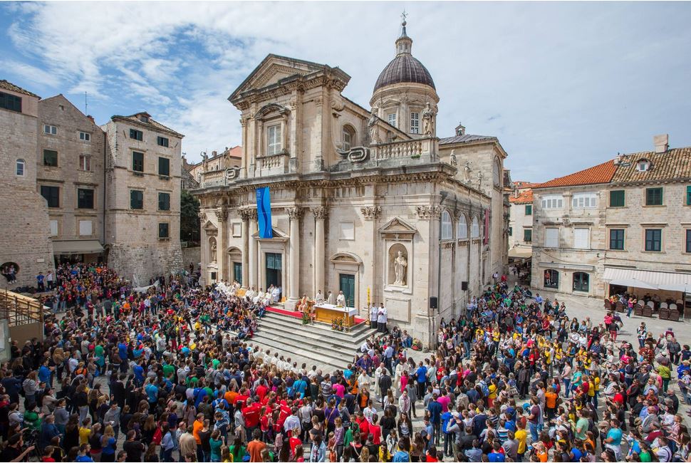 Na susretu mladih u Dubrovniku, 26. travnja 2014., sudjelovali su članovi Franjevačke mladeži i Zbora mladih Župe Gospe Sinjske. U šarenilu kabanica, hodajući po kiši, teško smo mogli doživjeti raskoš staroga grada. Loše vrijeme nije uspjelo pokvariti raspoloženje mladih, njih 35000 iz različitih dijelova Lijepe naše, Bosne i Hercegovine i Europe. To je se posebno moglo zapaziti u procesiji od Straduna do Gruža gdje je se pjesmom prkosilo kiši.