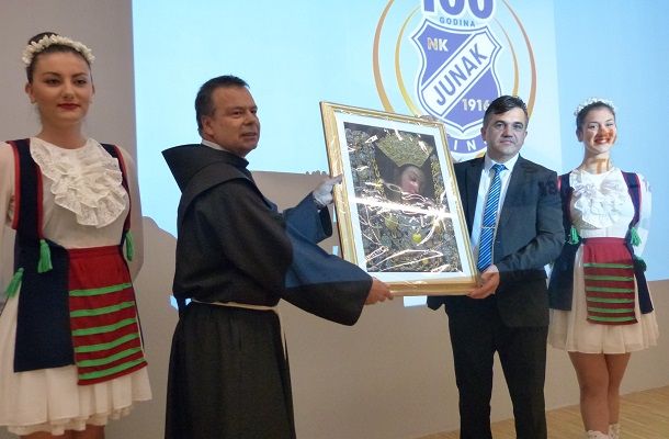 Nogometni klub Junak Sinj, u ponedjeljak 18. srpnja 2016., proslavio je 100. obljetnicu osnutka. U Alkarskim dvorima održana je svečana skupština. Uz brojna izaslanstva iz sportskog, političkog i društvenog života na skupštini je sudjelovao i fra Petar Klapež, gvardijan i upravitelj Svetišta Čudotvorne Gospe Sinjske koji je Junaku poklonio sliku Čudotvorne Gospe Sinjske. U svome obraćanju istaknuo je kako je Junak osnovan na dvjestotu obljetnicu krunjenja Gospine slike 1916. godine, dok je iste godine, na blagdan Velike Gospe odigrao prvu utakmicu i to protiv Hajduka.