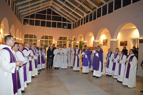 Gvardijan je u homiliji istakaovrijednost žrtve i spremnosti na žrtvu. Franjevački sjemeništarci su asistirali za vrijeme mise a Mješoviti župni zborje svojim pjevanjem uveliča Nakon misnog slavlja u klaustru samostana, ispred reljefa dvadesetorice fratara postavljeno je dvadeset svijeća a fratri i vjernici su izmolili molitvu odriješenja.