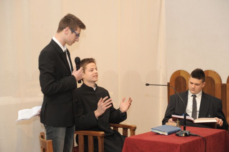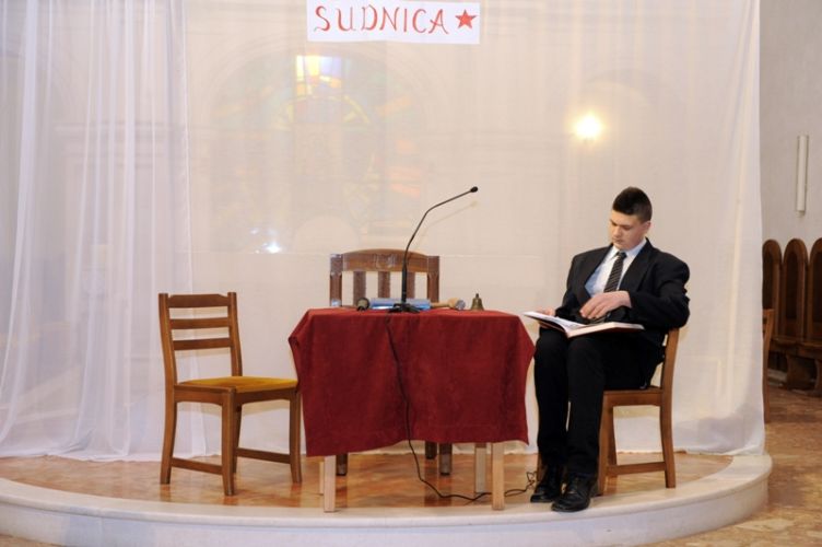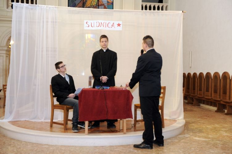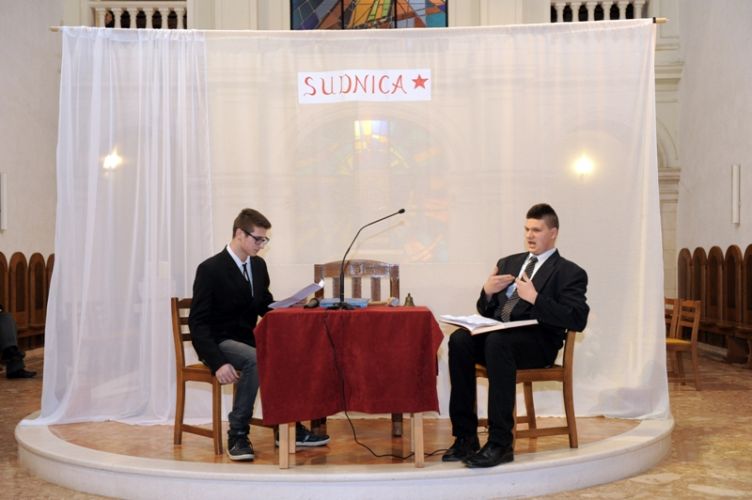„Čovjek nade često i ne osjeća neku naročitu nutarnju snagu, niti se osjeća herojski. Naprotiv, osjeća da nije dorastao svemu onomu što ljudi i Bog stavljaju preda nj. Ni uz cijenu najvećih žrtava ne odustaje od životnoga puta što ga je pred Bogom preuzeo. Takav čovjek ne očekuje čuda, pa ipak ono što radi, uz Božju pomoć biva uistinu čudo. Takav čovjek nade bio je Alojzije Stepinac,“ zaključio je župnik fra Ante. Poslije svete mise članovi Franjevačke mladeži izveli su scenski prikaz: „Saslušavanje i suđenje Alojzija Stepinca.“ Svojom izvedbom framaši su prikazali dijalog između tužitelja Jakova Blaževića, njegovog pomoćnika i hrabro svjedočenje optuženog Alojzija Stepinca. Na kraju predstave, framaš Tomislav Radić pročitao je dio iz Oporuke koju je blaženi Alojzije Stepinac napisao vjernicima svoje dijeceze u Krašiću 28. svibnja 1957. godine. U predstavi su sudjelovali framaši Moreno Vuković (Alojzije Stepinac), Jakov Blažević (Stipe Buljan), Tomislav Kovačević (pomoćnik tužitelja) i Stipe Dinarina (milicajac).