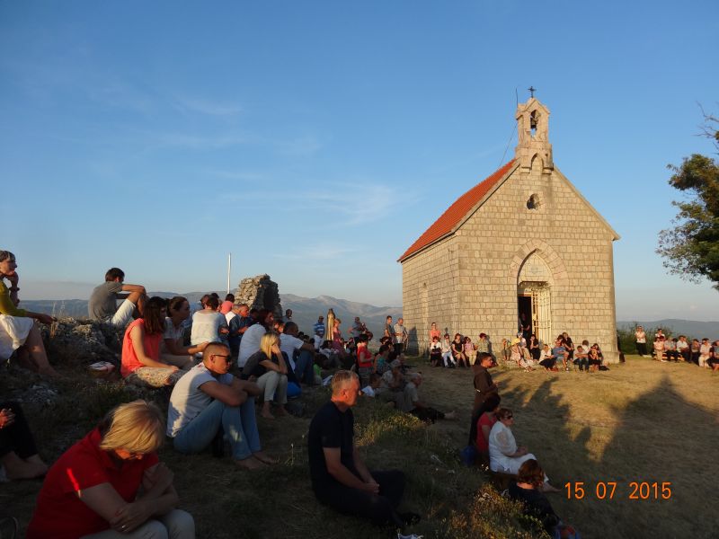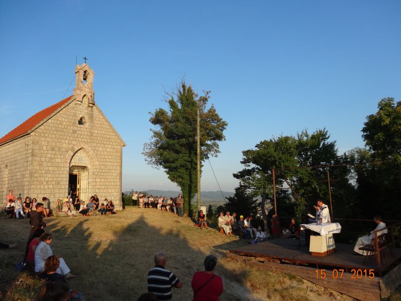 Uvodeći prisutne vjernike, koji su po nesnosnoj vrućini došli na Gospin Grad, u slavlje svete mise fra Ante im je nagovijestio da će u prvom čitanju čuti riječi koje je Mojsije čuo na Sinaju: Izuj obuću sa svojih nogu! Jer mjesto na kojem stojiš sveto je tlo. (Izl 3, 5). Ovo mjesto je za nas sveto tlo pa zato „u ovom biblijskom tekstu i susretu Mojsija s Bogom možemo prepoznati i ono što se nas tiče“. Pozvao je vjernike koji hoće i koji mogu da izuju svoju obuću i da misu slave bosi, što je i sam učinio. „Kad smo bosi, onda nije teško kušati kako smo ranjivi. Ne bismo mogli trčati bosi po Gradu niti niz Grad. Ni Mojsije ne bi bio mogao trčati po Sinaju bos i pobjeći od Gospodina. Kad ga je Jahve pozvao da izuje obuću, onda je to činio iz više razloga. Jedan od njih, a upravo njega nam valja posvijestiti na početku mise, je ljudska slabost, izloženost, ranjivost koja se proteže po cijelom tijelu, a bosi je osjećamo u dodiru sa zemljom. Ali, upravo je ta ranjivost mjesto susreta s Bogom. Nije mjesto susreta s Bogom tamo gdje sam ja najjači, gdje sve mogu, gdje mi je sve u ruci i sve se podvrgava mojoj volji. Najbliže sam Bogu tamo gdje sam ranjiv, izložen, slab. To je važno uočiti na početku mise. Crkva je ovo iskustvo zapamtila te nas uvijek iznova poziva da se s Bogom susretnemo polazeći od svojih najslabijih, grešnih strana, jer svijest o slabosti i grešnosti je pretpostavka da se susretnemo s Bogom. Kao što svijest o mojoj ranjivosti postaje živa kada sam bos i osjećam dodir sa zemljom, kad osjećam krhkost i ranjivost ljudskoga tijela, tako i blizinu Božju osjećam tamo gdje postajem svjestan svoje slabosti, svojih promašaja, svoje krhkosti i ranjenosti. Uz to se otvara i svijest za ranjenosti drugih ljudi, za krhost onih koji su nam blizu. Na početku mise pokajmo se najprije za to što ne opažamo ni svoju ni tuđu slabost i ranjivost iz Božje blizine, nego iz svoje ljudske krhkosti i oholosti. Zamolimo Boga da nam da snagu da se susretnemo sa svojom slabošću pred njegovim licem i da kroz večerašnju euharistiju produbimo odnos s njime.“