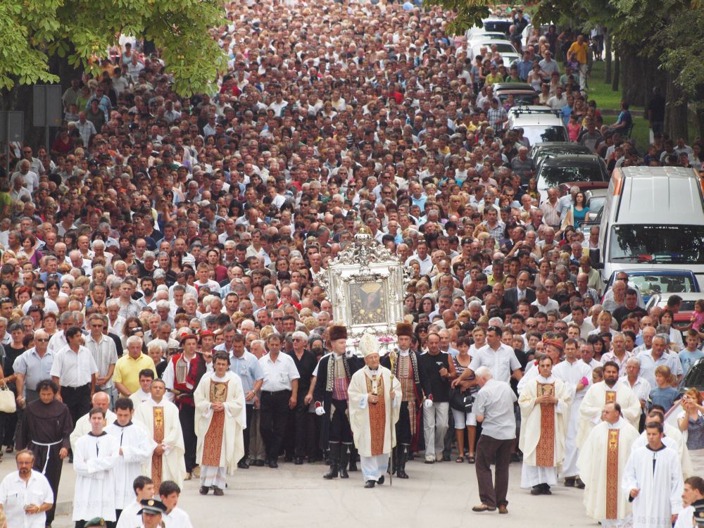 [101] U posljednje vrijeme procesija ne ide ulicama grada, nego se samo Gospina Slika donese do glavnih vrata crkve i njom se dade blagoslov. Zatim se Slika ponese na veliki oltar i pred njom bude svečana sv. Misa. Slika ostane na velikom oltaru do večeri, kad opet bude sv. Misa, iza koje se slika vraća na svoje mjesto. U tim kratkim procesijama Čudotvornu Sliku kroz crkvu prate samo svećenici. Ispred Slike su djevojčice u bjelini koje posiplju cvijeće, dok kor pjeva pjesme. — God. 1964. procesija je išla kroz samostansko dvorište, a onda je Slika donesena na veliki oltar, gdje je ostala kao i drugih poslijeratnih godina.