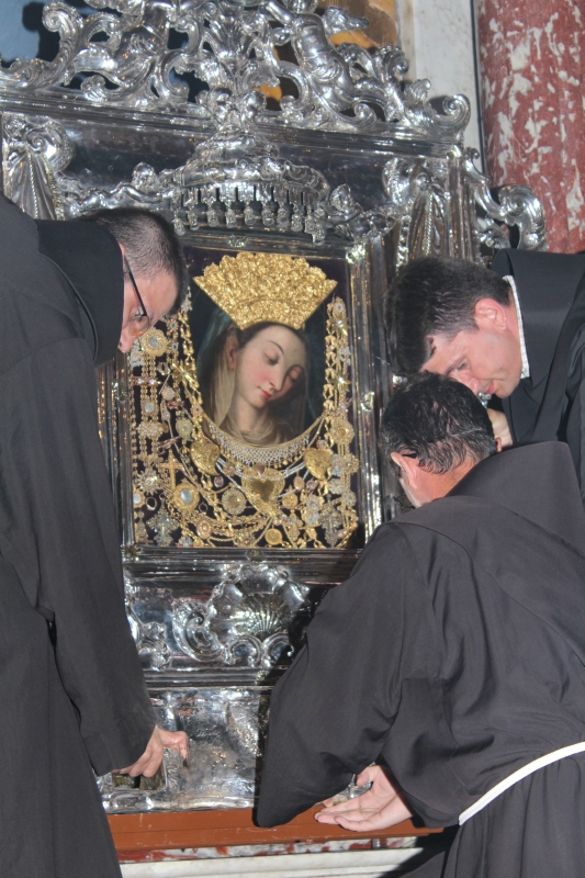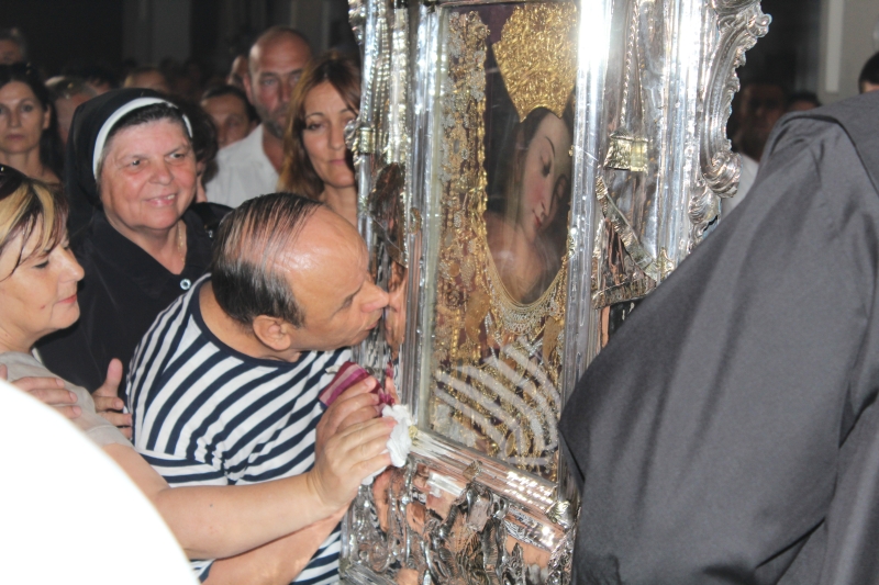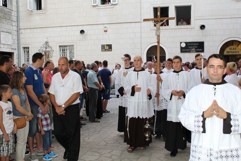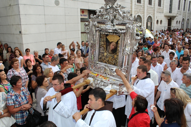 U predvečerje svetkovine Velike Gospe, 14. kolovoza 2014. u 18.00 sati, slavlje Uznesenja blažene Djevice Marije započelo je u 18.00 sati skidanjem Gospine slike i procesijom preko samostanskog dvorišta do Trga dr. Franje Tuđmana. Za vrijeme skidanja slike i procesije slavila su zvona Gospe Sinjske i svirale fanfare. Sliku Gospe Sinjske nosili su franjevački bogoslovi.