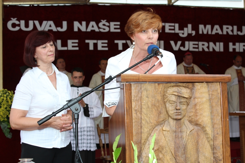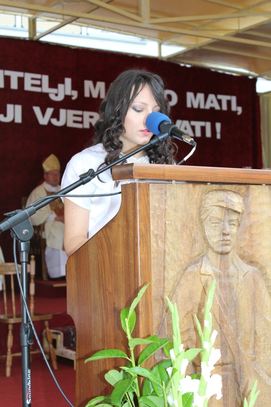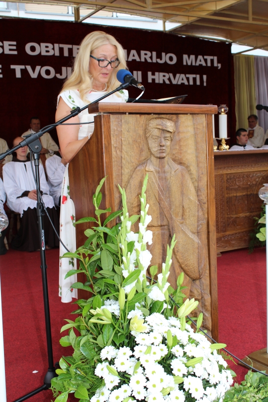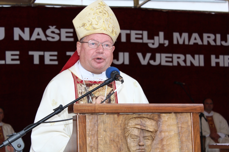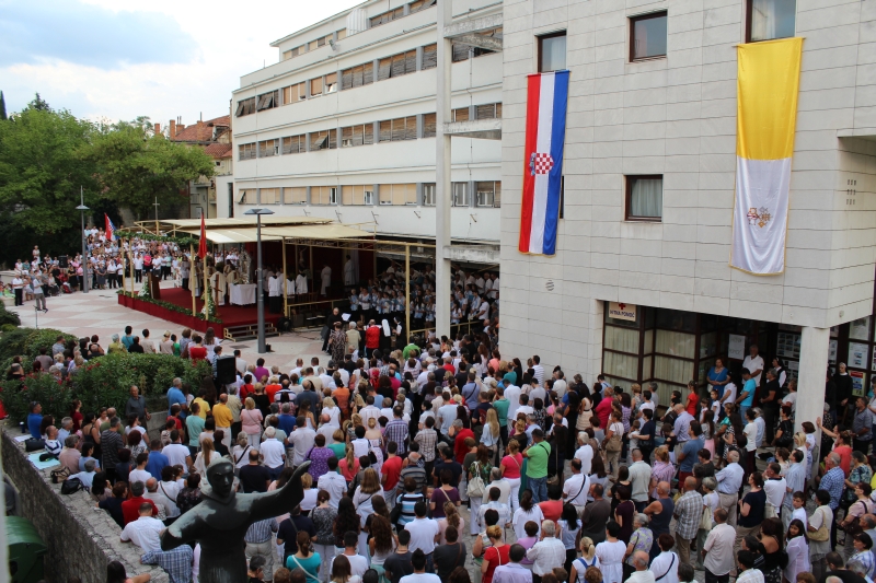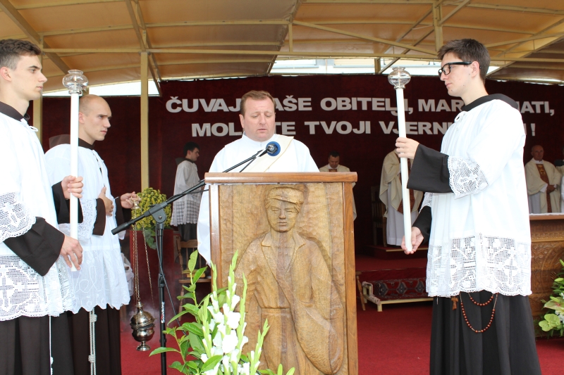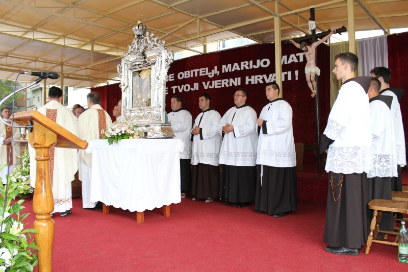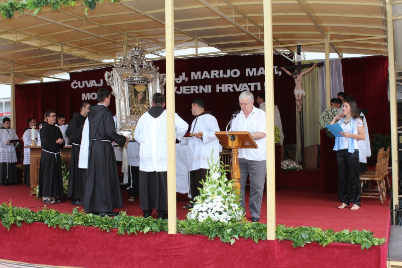 Braćo i sestre, dragi štovatelji BDM, dragi hodočasnici, nalazimo se u svetištu Gospe Sinjske - Ramske i slavimo svoju zaštitnicu BDM koja nas potiče da ponovno otkrijemo radost vjere u sebi, i da iznova pronađemo zanos za prenošenje vjere kako su to učinili naši ujaci i naši preci s koljena na koljeno. Radost i zanos, radost vjere i zanos u vjeri koju se na različite načine svjedoči i prenosi drugima. Večeras slavimo svetkovinu Uznesenja BDM ili ulazak u nebo BDM, to je dan u koji je ona završila svoj zemni život i prešla u slavu svoga nebeskoga Oca. Ona je uzor svoj Crkvi, uzor svakom pojedincu, kršćaninu a njezin svršetak, tj. njezina konačna proslava je izazov i poziv svima nama da krenemo njezinim stopama, stopama njezine vjere, njezinog predanja Božjoj volji kako bismo stekli vijenac koji je njoj već dodijeljen. Krist je svojoj Crkvi ostavio trostruki dar od kojega živi: svoju božansku Riječ i u njoj istinu o Bogu i čovjeku, sama sebe u euharistiji i svoju Majku. U čemu je njezina veličina?