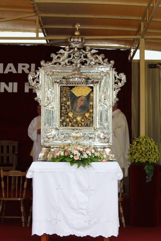 Nakon ulazne pjesme, fra Neven Pavlinušić ispjevao je Pohvale Čudotvornoj Gospi Sinjskoj. Euharistijsko slavlje je predvodio mons. Marko Semren, pomoćni biskup banjalučki, a u koncelebraciji su bili provincijal fra Joško Kodžoman, gvardijan i upravitelj Svetišta fra Petar Klapež, župnik fra Ante Bilokapić i drugi svećenici.