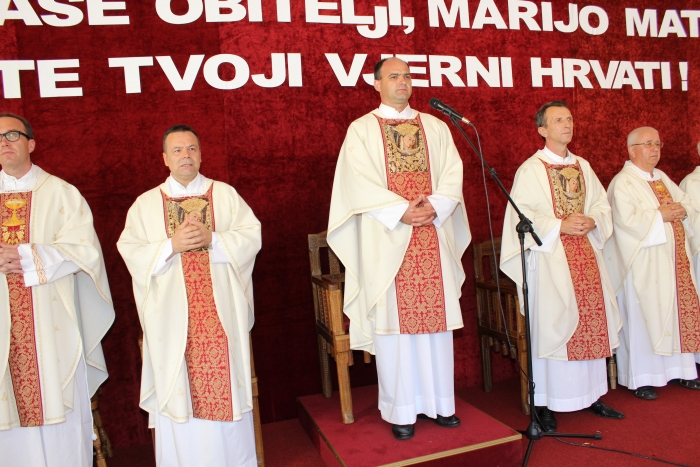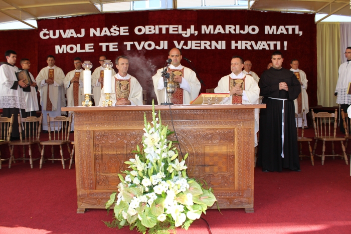U današnjem slavlju, u središte našeg interesa i molitve, želimo staviti stvarnost naših kršćanskih obitelji, koje prolaze kroz velike kušnje i životne krize. Iako se nalazimo u slavljeničkom raspoloženju, danas na svetkovinu Uznesenja blažene djevice Marije, prisjećamo se i povijesnog događaja čudesne obrane Sinja i Cetinske krajine, koja se dogodila pred trista godina pod bedemima sinjske utvrde i na mjestu na kojem upravo stojimo.
