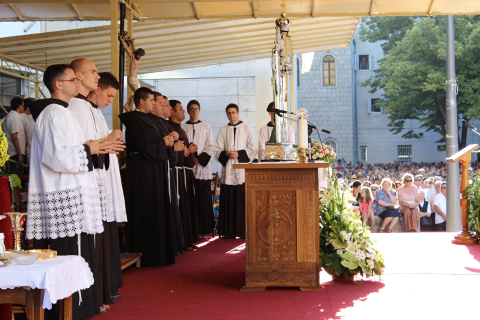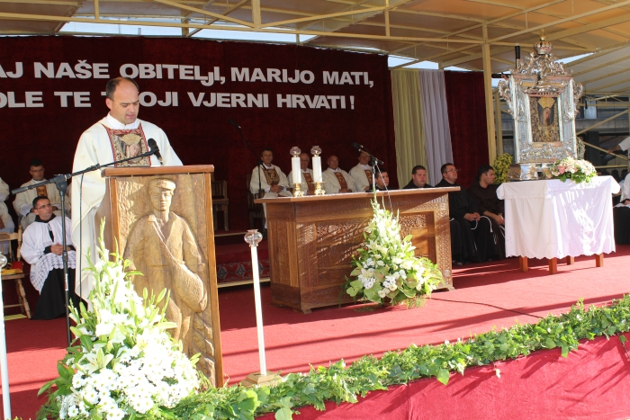 Poštovani oče gvardijane i čuvaru svetišta Čudotvorne Gospe Sinjske, poštovani oče župniče, braćo svećenici, časne sestre, bogoslovi, dragi narode Cetinske krajine, dragi hodočasnici koji ste se okupili iz svih krajeva naše Domovine, dalekih i stranih zemalja i susjedne nam BiH kako biste tu u Gospinom svetištu u Sinju za sebe i svoje obitelji isprosili razne milosti i darove s neba!