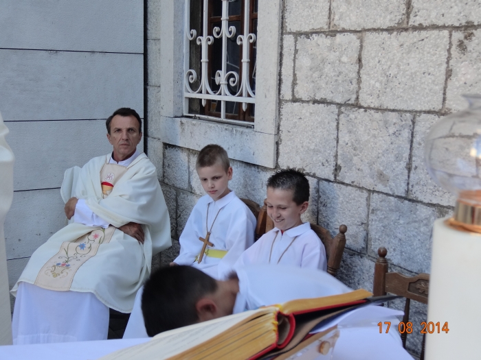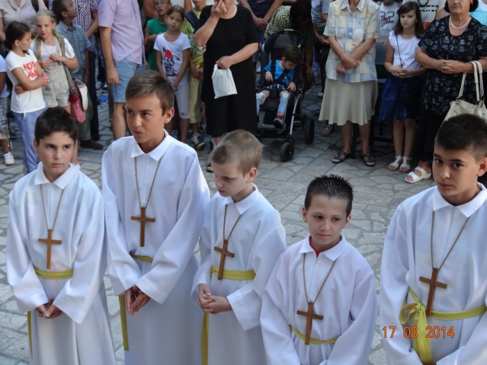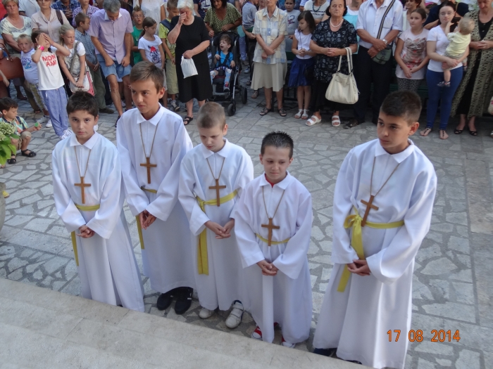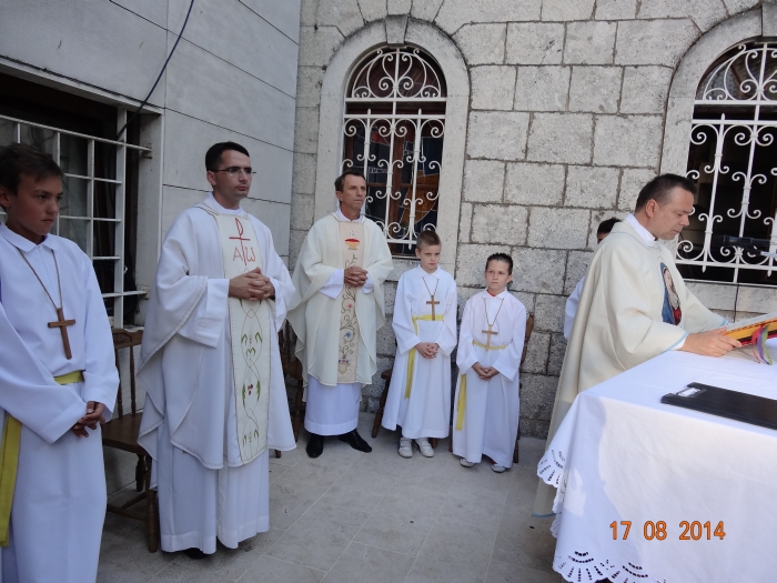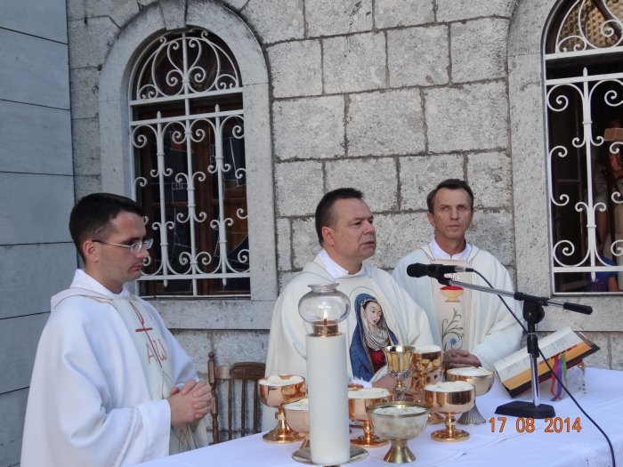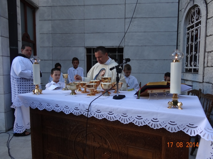 U nedjelju, 17. kolovoza misno slavlje i posvetu djece Gospi predvodio je gvardijan fra Petar Klapež, s njim su koncelebrirali župnik fra Ante i župni vikar fra Antonio.