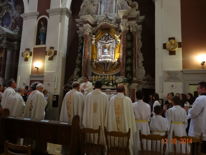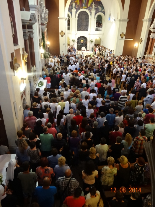 Približavanje svetkovine Velike Gospe primijeti se na svim svetim misama u Svetištu. Sve veći broj Marijinih štovatelja dolazi organizirano ili u manjim skupinama. Tako su jučer na večernju misu došli hodočasnici iz župe Runović sa svojim župnikom fra Mladenom Prolićem. Crkva je bila premalena za sve one koji su došli na „zavit Gospi“, tako da su mnogi vjernici ostali u prostoru za ispovijedanje i u samostanskom dvorištu. Večernju misu predvodio je don Josip Periš, koji će propovijedati na večernjim misama do kraja devetnice.
