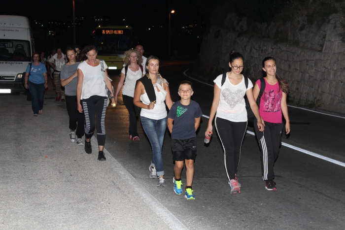 image013S krunicom u ruci, pješačeći cestama koje vode prema Sinju, svakim danom primjećujemo sve veći broj hodočasnika, koji dolaze na 'zavit Gospi'. U njihovoj prisutnosti očitavamo molitvu koju pred Gospinim Likom molimo četvrtog dana devetnice:
