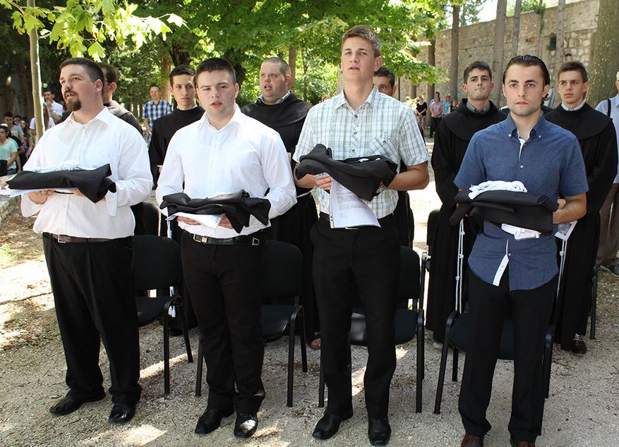 (Sinj), Nikola Dominis (Postira), Zvonimir Romić (Metković), Nikola Žulj (Knin), a prve zavjete položilo je 6 novaka: Slaven Čeko (Livno), Filip Čogelja (Kaštel Stari), Matej Perić (Vinjani), Ivo Rastočić (Metković), Martin Romić (Metković), Josip Šabić (Zmijavci). Obred primanja, euharistijsko slavlje i obred zavjetovanja predvodio je fra Joško Kodžoman, provincijal.