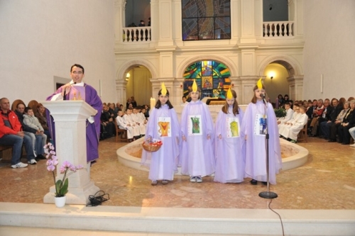 Kandidati za sakrament Prve pričesti u Župi Gospe Sinjske, kroz četiri tjedna priprema, nestrpljivo su čekali Prvu nedjelju došašća. Tako su u nedjelju 30. studnoga 2014. u crkvi Gospe Sinjske, četiri prvopričesnice ozarena lica, obučene u ljubičaste plaštiće oslikane svijećama koje imaju svoje ime: Radilica, Moliteljica, Dobročiniteljica, Razveseliteljica, svečano otvorile Novu liturgijsku godinu. Cijeli recital popraćen je uz solo i zborsko pjevanje članova Dječjeg zbora s željom da Maleni Isus u božićnoj noći ispuni ljudska srca veseljem. Djecu su za ovu prigodu pripremali s. Jelena Mijić i fra Jure Župić. (Paula Šarić)